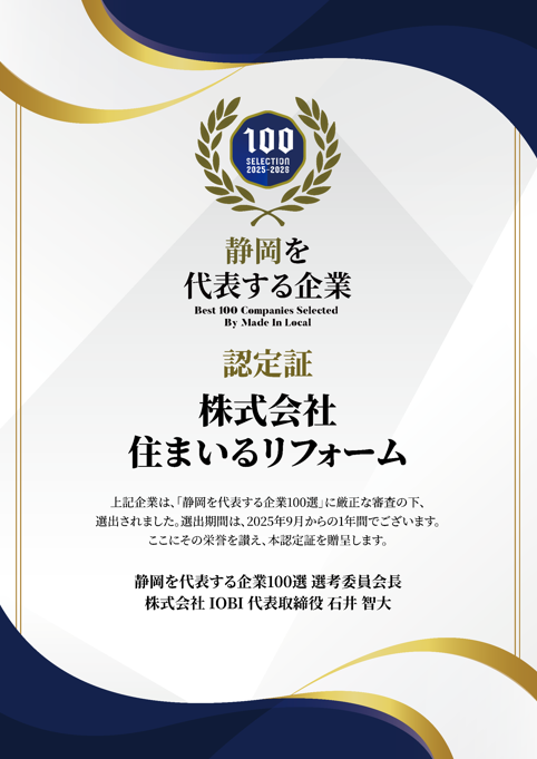 2025年「静岡を代表する企業100選」に、住まいるリフォームが選出されました